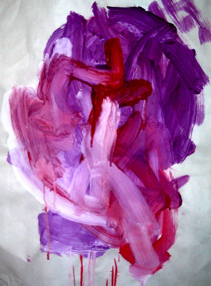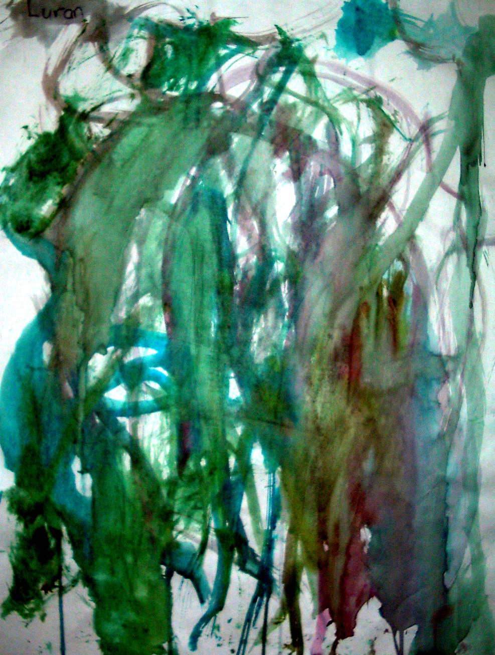 这三件作品是路然在幼儿园作,约作于1999年。水彩。(457 x 603 mm)。