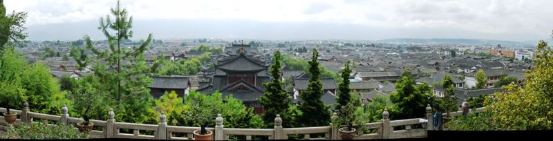 丽江木府。照片前景中的所有大房子都是木府的一部分。中间一串是办公区,左边树后面是生活区(右边的不是)。木家世袭当地土司二百多年,官至三品。