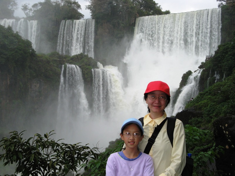 We travelled to Iguacu Falls the way most Argentineans did: by bus. A long distance bus, driven mostly in the night, provided us with life’s necessities. In addition to the basics, such as warmth, water, food, toilet facilities, we had reclining chairs which double as beds, or camas. For dinners, we had very tasty rib-eyes; and on the outgoing trip, dinner service even included alcoholic drinks (“Red, white, or Champaign?”)! Yiran was very happy to be on board. “I can live like this!” she declared. We rode on the upper level, which, when the windows were not completely fogged up, provided the better view. But it also shook around more—we had to take motion sickness pills. On the way back, the highway was blocked for a couple of hours, due to an early morning fog in the low-lying areas ahead. Other than that, the ride was rather uneventful.