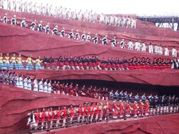 Performed culture: “印象丽江”, directed by 张艺谋, Yulong Mountain玉龙雪山