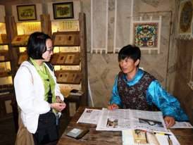 In Old Town Lijiang, we had a fortuitous meeting with a real Dongba. He was a man about our age, sitting behind a desk in a store selling stationary with Naxi insignias. We were looking around in the store and suddenly Jackson saw the sign “邂逅东巴” on his desk. We asked him, “Are you a Dongba?” He said yes, looking almost surprised that someone would be interested in his identity. We knew that in the Naxi culture Dongbas are revered for their literacy, knowledge and wisdom. So our excitement at meeting a real Dongba could hardly be contained. We talked with him for what must be a good half hour, our topics ranging from the origin and morphological characteristics of the Dongba language to the present-day commercialization of Naxi culture. Some of his statements were apparently less than accurate, but he was certainly poignant, and articulate. He claimed that scholars from forty countries are currently conducting research on the only pictographic writing system existing today but no one other than a handful of Dongbas can fully understand it. If so, I asked, why don’t the Dongbas teach the language to as many as possible? “We don’t,” he said, “we don’t even teach the language to our sons if they don’t appear to be intelligent. We only teach the really intelligent, promising boys.” Asked again why, he said it’s because literacy is the key to the Dongba religious scripture and only the intelligent ones can decipher the scripture appropriately. I made the mistake of asking him to teach me to read a line from what appears to be a Dongba language textbook on his desk. No, he said. If I really wanted to learn that sentence, I would need to spend three days sitting with him, not just a few minutes.