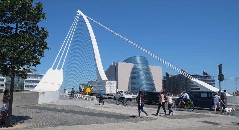 In Dublin, the Samuel Beckett Bridge is even more innovative and evocative. It’s a “cable-stayed bridge” with an asymmetrical design. Jackson concluded that it looked like a harp, the national symbol of Ireland, and a web search proved that he was right.