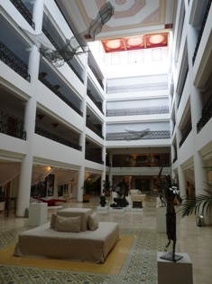 It makes sense that our rental car must be picked up in Ville Nouvelle, or the new city—the medina is just too crowded. The hotel wherein the rental car agency resides, Hotel Sofitel, is nothing short of monumental. Its meticulous manicured gardens, grand entrance, the well-appointed halls with high ceilings, the ostentatiously modern deco, the modern art exhibition, all would have melted perfectly into any great European capitals, but here in Morocco they jab your senses like a silver toothpick.