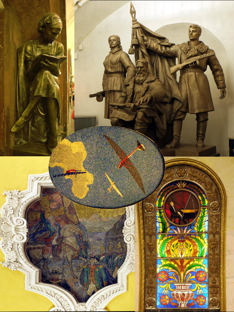 After the Kremlin tour, we spent some time in the famed Moscow subway. We took a total of 4 stops in 3 trains, visiting 4 stations of different characteristics. One of the stations had overhead mosaics depicting many airplanes flying in the sky—the subway system was used as air-raid shelters during WWII, and these mosaics might have been constructed to commemorate that. Another station had many groups of statutes proclaiming the power of Soviet Union, with a few groups pointing to or looking towards a statute of Stalin that used to stand there. In the other two stations, one had mosaics depicting great historic Russians figures, either of the Soviet era or before, and the other had stain glass pictures of Socialistic propaganda. The next day, while in St Petersburg, we got news that a subway train in Moscow derailed, with many casualties.